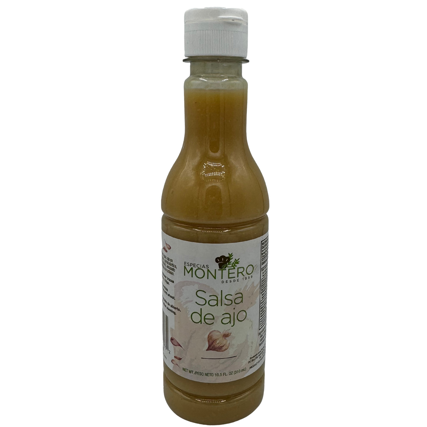 - Ingredientes: Ajo en pasta, sal, vinagre, antioxidante natural, goma xántica, benzoato de sodio, sorbato de potasio.